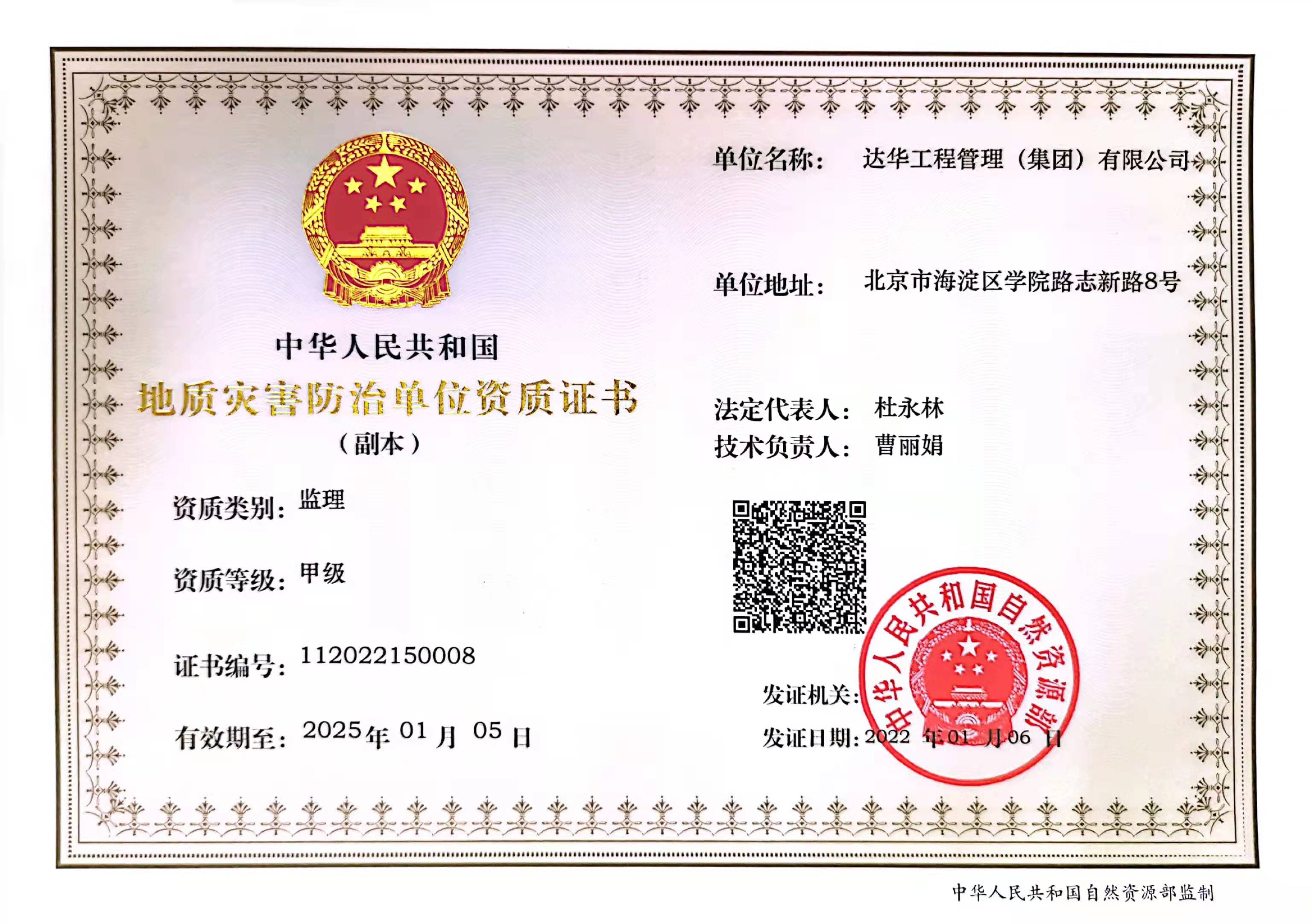 - 達(dá)華集團榮獲中國自然資源部頒發(fā)的地質(zhì)災(zāi)害… 2022/01/21